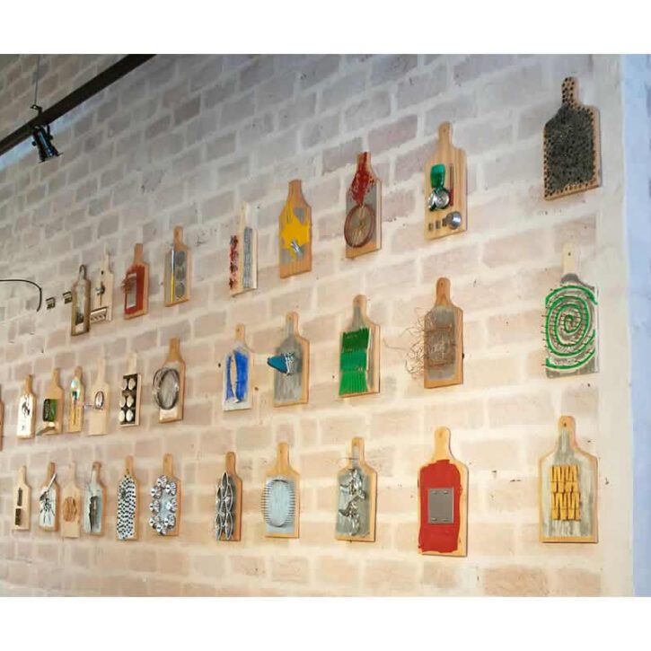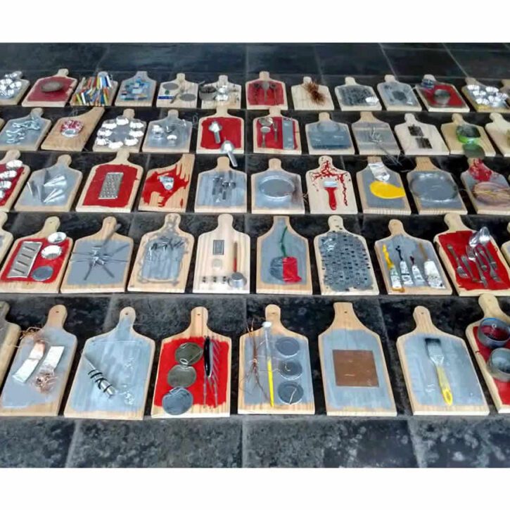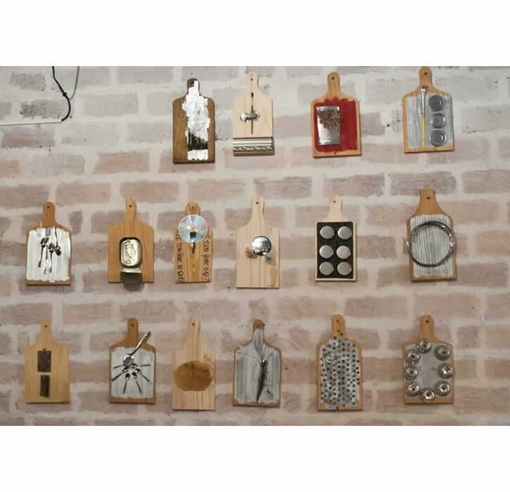 75 tábuas de cozinha. Eis o solo, o suporte, para a germinação poética das assemblages de Sônia Gutierrez. Uma ao lado da outra configuram a totalidade de uma floresta, mas de extrema diversidade botânica.