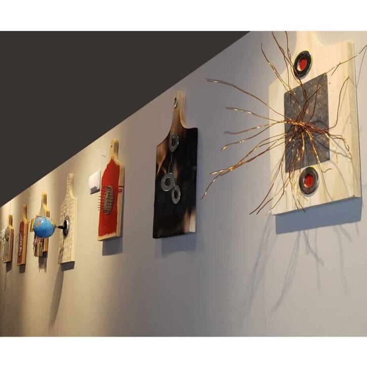 (…) A instalação “À LA CARTE”, de Sônia Gutierrez, chama a atenção pela estética lisonjeira favorável à pluralidade das coisas sem que elas tenham que servir à experiência humana. Por mais significados que cada um dos objetos carregue, por mais espanto ou deleite experimentado na totalidade da obra, as peças ali instaladas querem estar livres. Expostas, as tábuas, sinônimos de agressão à carne, ao mesmo tempo em que provocam, oferecem “à la carte” questionamentos da forma e da matéria que parecem estar condenadas a servir ao homem. No entanto, podem não servir. Talvez, o que restará da oportuna contemplação conflitante será a estética da estranheza. A exigência do significado põe o homem à serviço das coisas, os papéis se invertem.