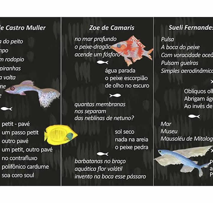 * Obs.: A capa do livro O Sol e o Peixe – Prosas Poéticas, traz imagens. As aqui publicadas (de 38) as desenhei para um livro infantil inédito e exposição em plotters que deve acontecer nas ruas da cidade de Curitiba ainda em 2017 com haikais de poetas paranaenses mais os japoneses clássicos Sissa e Bashô que tem o peixe como tema na sua produção.