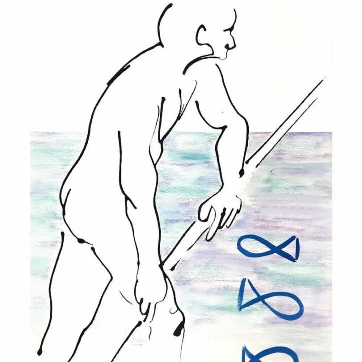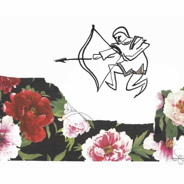 In the beginning, the theme is around two great perspectives: the woman and the land, both are identified as life generators, emerging from these the anger which feels about the nature agressions, about the natives questions and about the human exploration by own human being. Many times this is shown essentially on the line; on other it is associated to textures and visual effects from printing to collage, especially envelopes. These envelopes gain value on the work not only by plasticity but also like symbolic, summarising the human being who tries to break the silence from the other – through the silent act of a placed message on fragile and enclosure paper – all the existential angst of communication and anti-communication; It has been working like cloistered. As on the poemgraphy of the woman’s sensual body that transmits the sensation of freedom like the bird’s flying or the key for the claims for social questions (ecology, population growth, feminism) or as the man’s key point, firmly constructed – also defined by contour – it shows the necessity of denunciation.