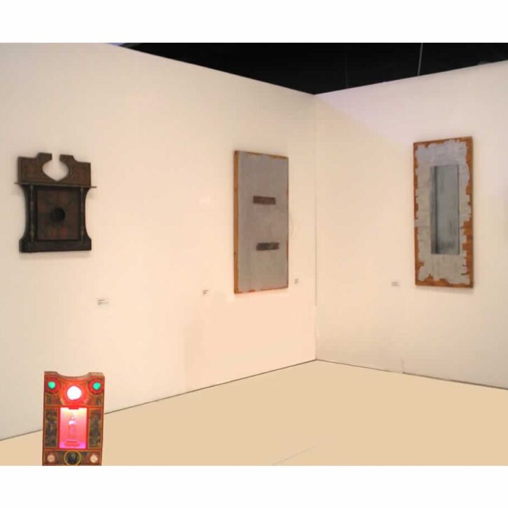 The metallic colors like silver, that attached at the old wood report us to her family traditions of spirituality and to high ethical ground of life’s conception. Including elements like old nails and studs which are connected like iconographic elements and symbols that create dialogue to a poetics of freedom whom she is a spokesperson in Paraná.